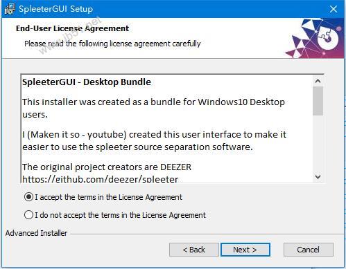 1、下载双击 SpleeterGUI_v2.5.msi 进行安装,接受许可