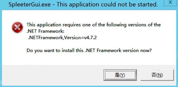 如果你运行SpleeterGUI时出现如下报错,是因为你电脑缺少必要的.NET Framework运行库: