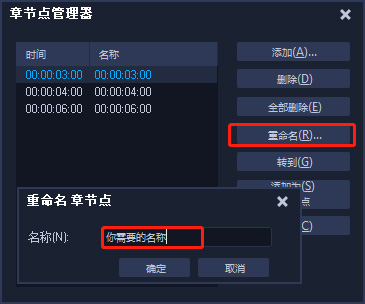 5、在章节点管理器中,可以添加、删除、重命名和转到对应的节点。