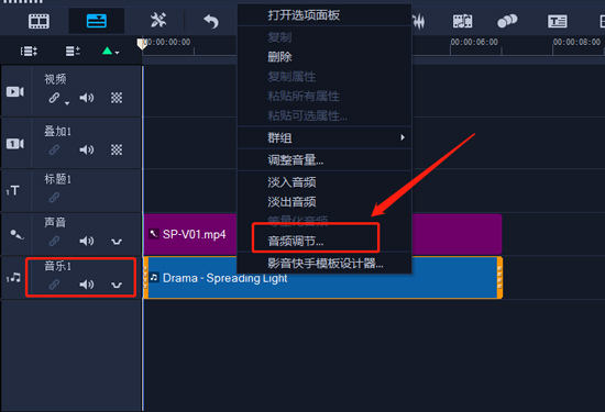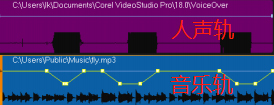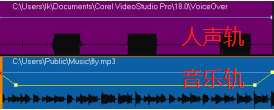 1、在“时间轴”的轨道上,确保要应用 “闪避”效果的轨道在您想要突出的视频轨、覆叠或声音轨下方。也就是人声在上,音乐在下。