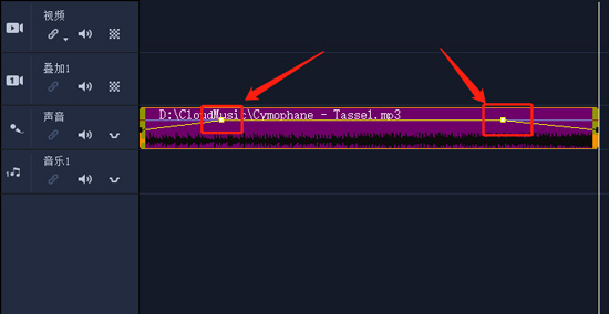 6、当首尾的调节点都已调整好,那么可以带上耳机试听一下效果是不是达到,如果中间需要淡化的效果,也可以用这种思路来做。完成之后别忘了再点一下混音器的按钮切回正常的工作模式。