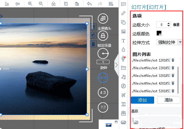 若需要替换所添加的图片,可通过“清除”和“添加”按钮进行操作,然后设置图片幻灯片的边框、边框颜色、拉伸方式和不透明度。