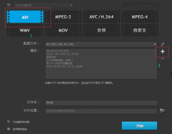 3)最后是视频的渲染。输出视频时,仍旧选择avi的视频格式。点击右边的加号按钮进行设置。