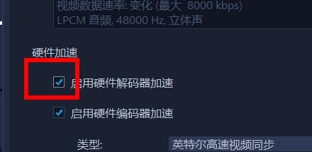 6、然后我们就能在这里设置硬件加速的具体类型,例如高速视频的同步。