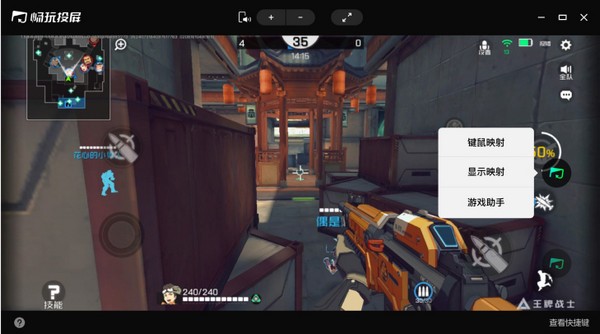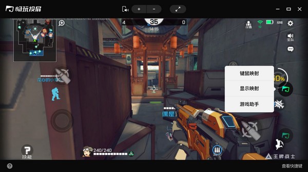黑鲨畅玩投屏自带键位映射功能,当检测到手机已经打开我们所支持的游戏时,即会显示畅玩投屏的功能入口。点击功能入口中的键鼠映射,即开始键位配置。