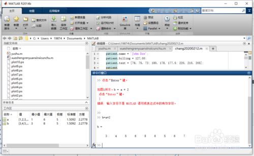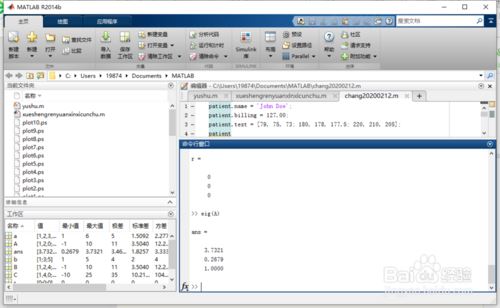 命令行键入:whos 点击“Enter”键。
