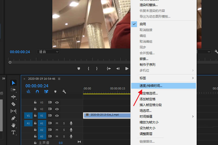 1、鼠标右击视频,选择持续时间。