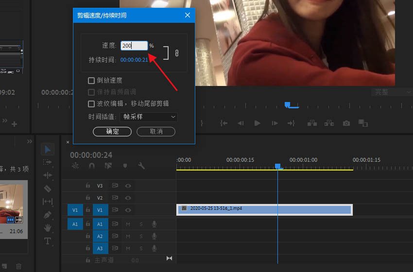 2、将速度百分比增大,缩短视频时间。