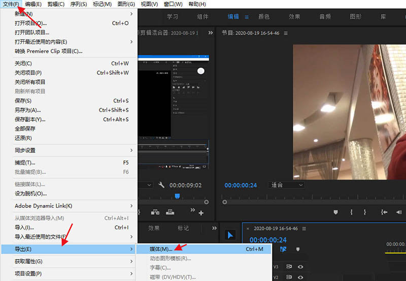 3、然后点击文件,选择导出到媒体。