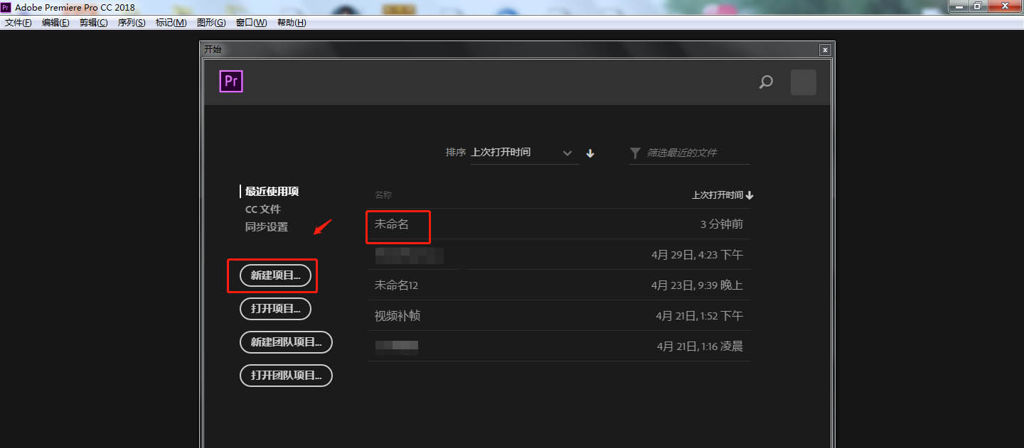 1、首先在电脑中打开PR软件,点击”新建项目“,创建一个用来剪辑的项目。