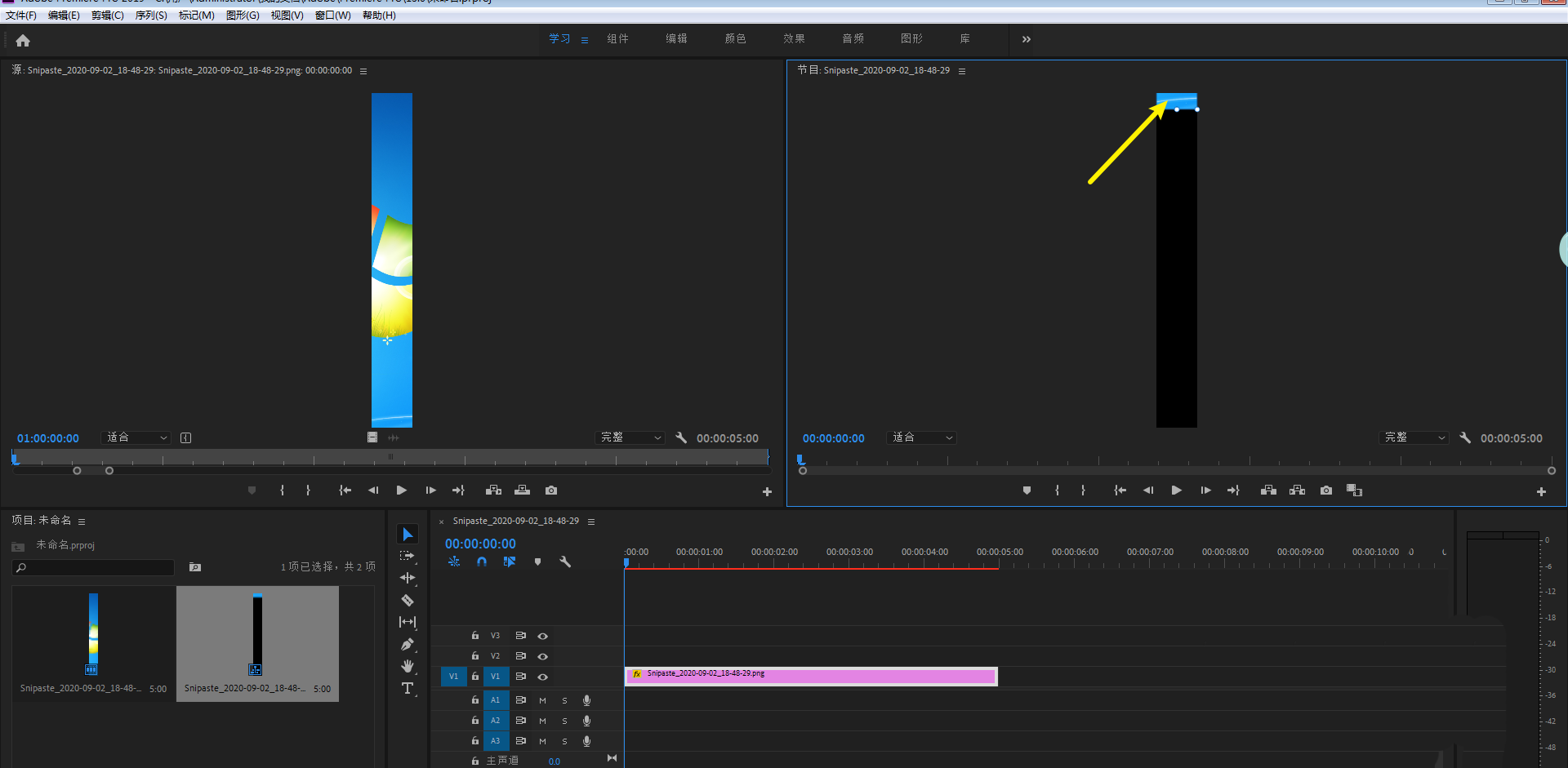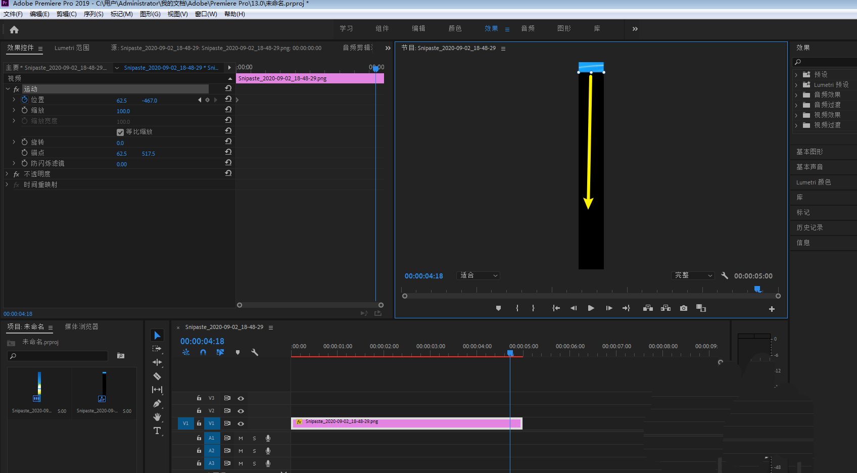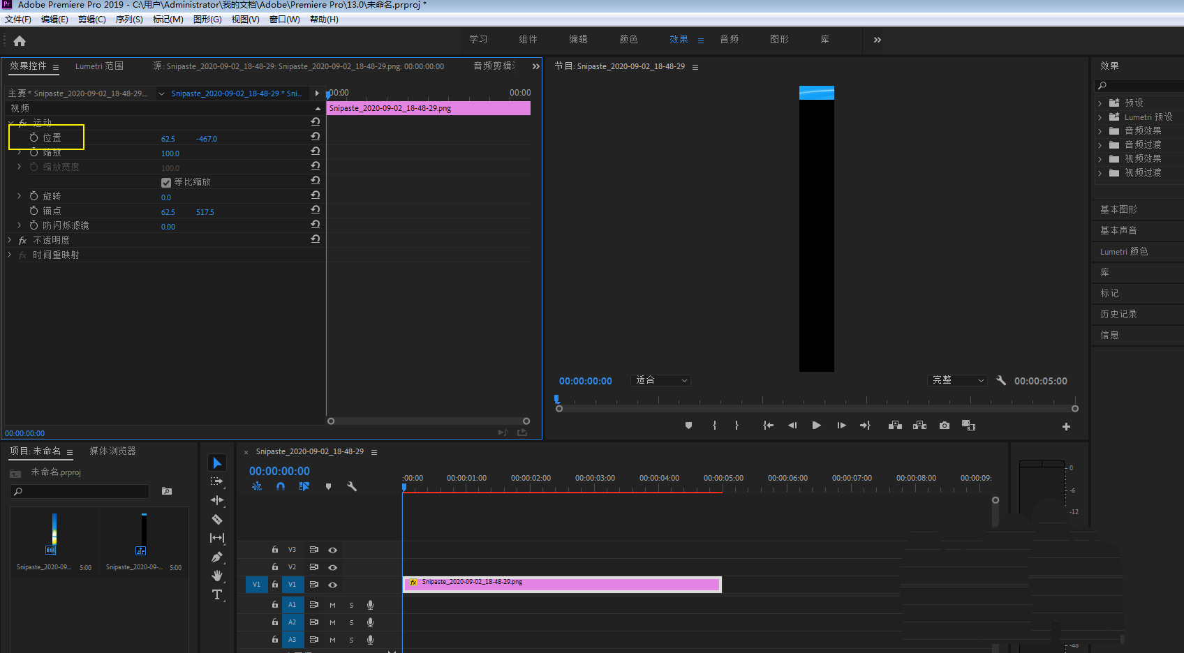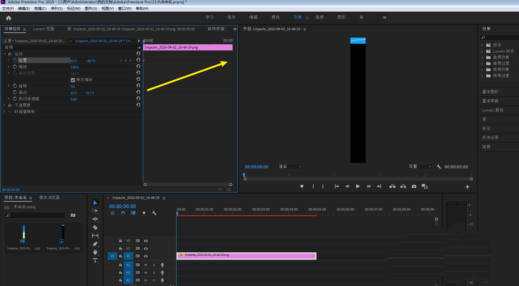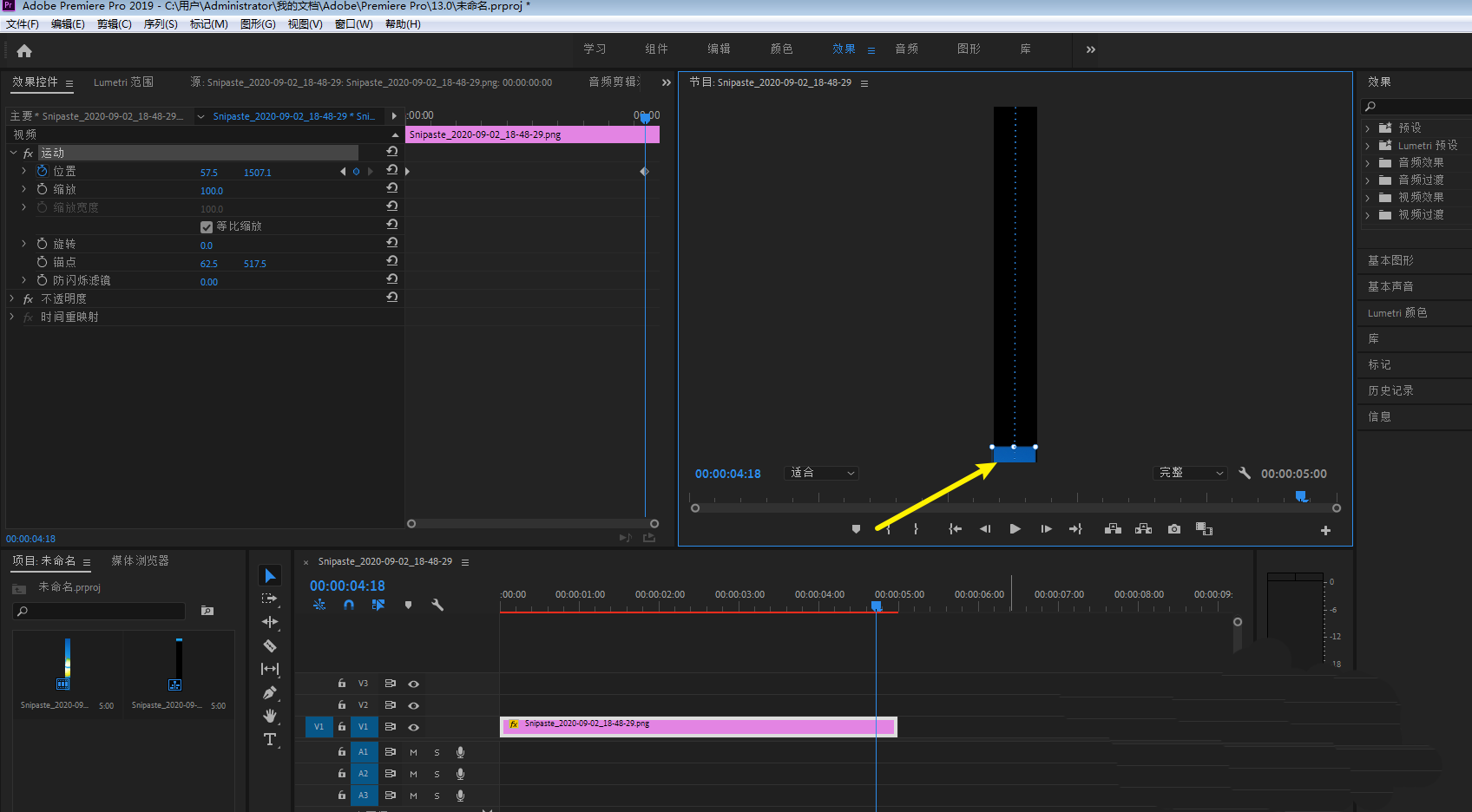 6、让图片在窗口下部露出一点点,那么就在pr做出来长图滑动效果,如下。