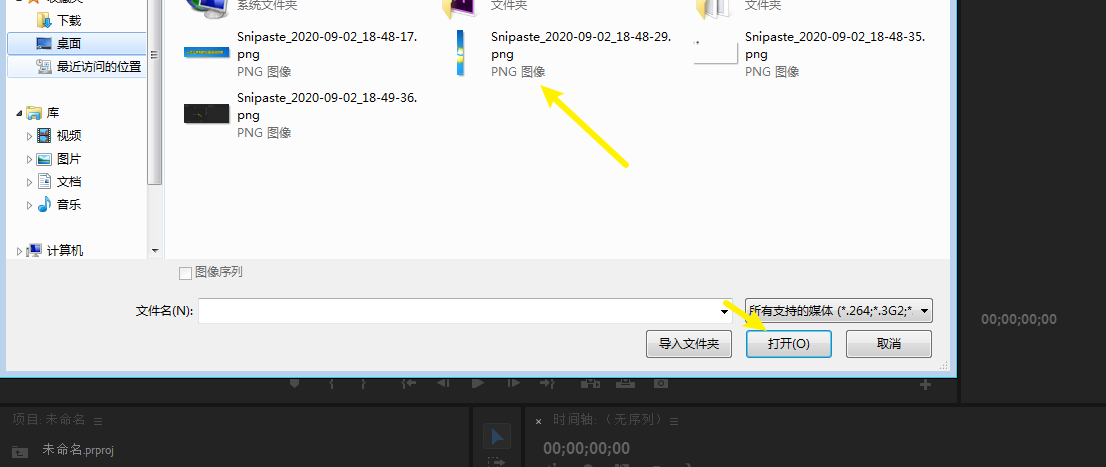 1、鼠标双击pr,双击pr素材库。