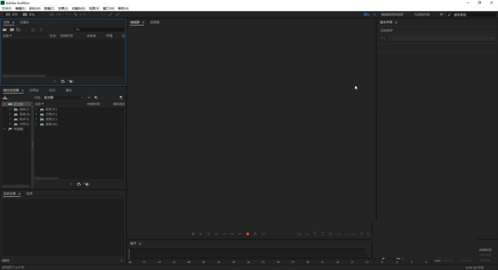 正式进入Adobe Audition 2020中文完整版软件操作界面,此时软件已成功安装,可以一直使用,恭喜你。