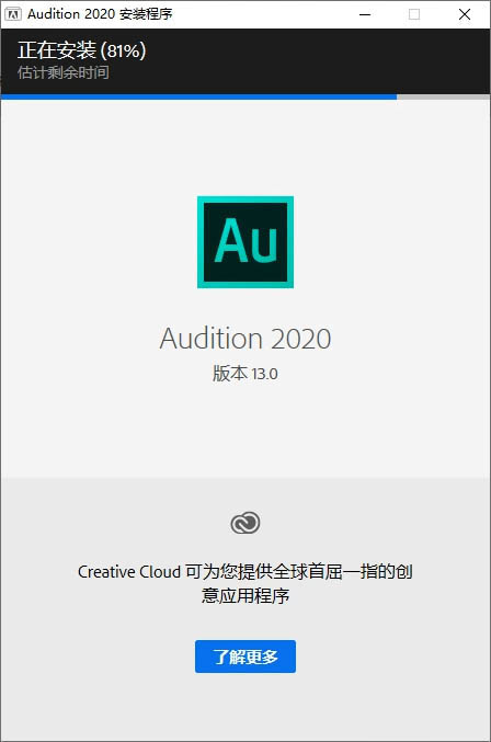 5、等待Adobe Audition 2020所有程序安装完成;
