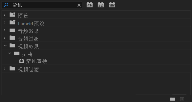 2、接着在效果中查找紊乱置换效果