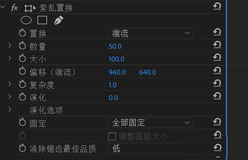 6、总结:新建旧版标题,然后添加紊乱置换效果,并对偏移做合适的变化效果