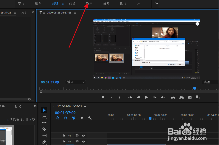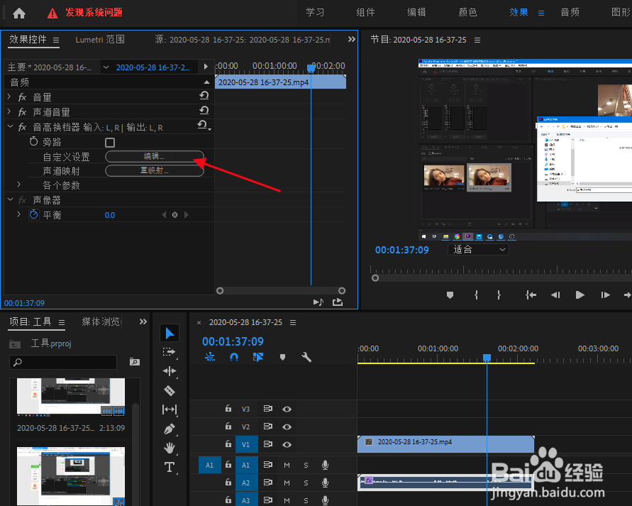5.再点击进入效果控件,点击自定义设置中的编辑。