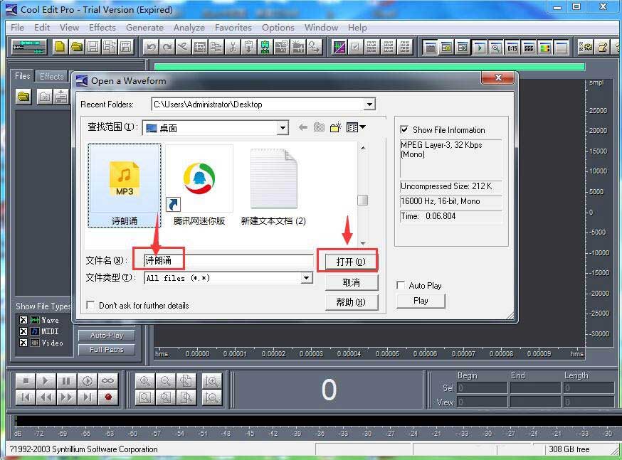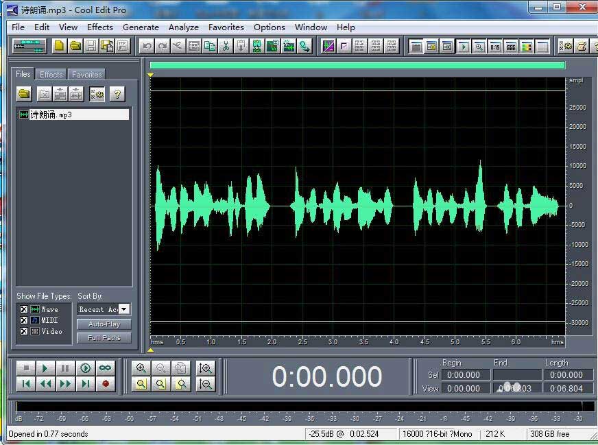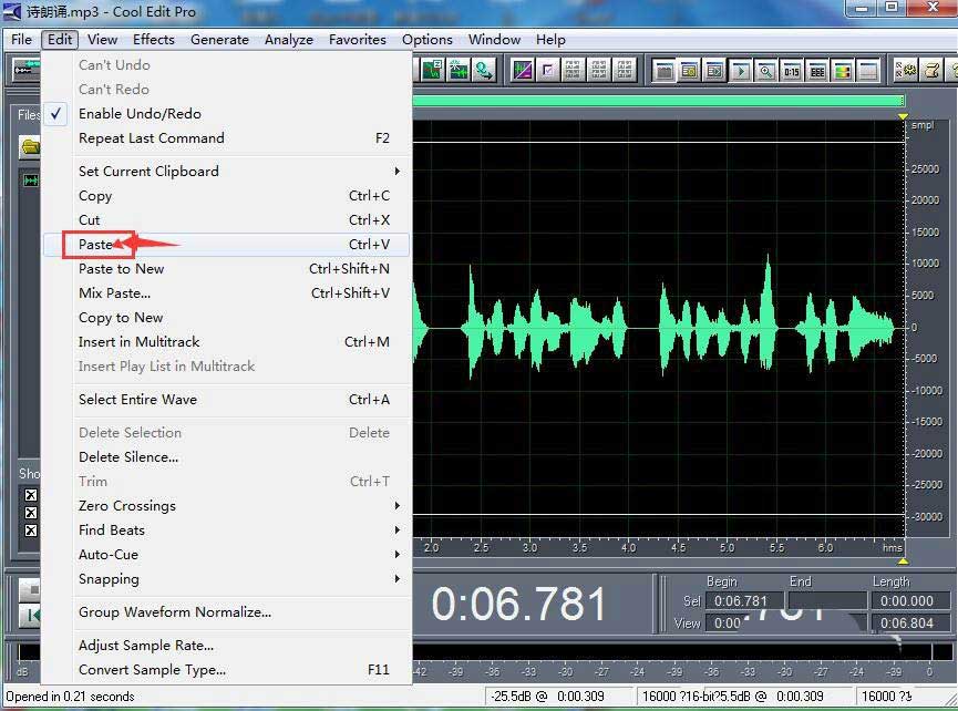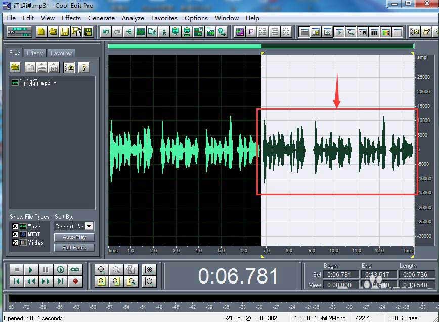 3、将音乐添加到cool edit pro 中;