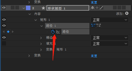 4、转化后,点击在矩形路径打上关键帧