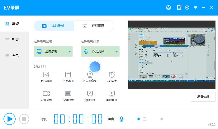 EV录屏的分屏录制画面中,包括三个部分的内容: