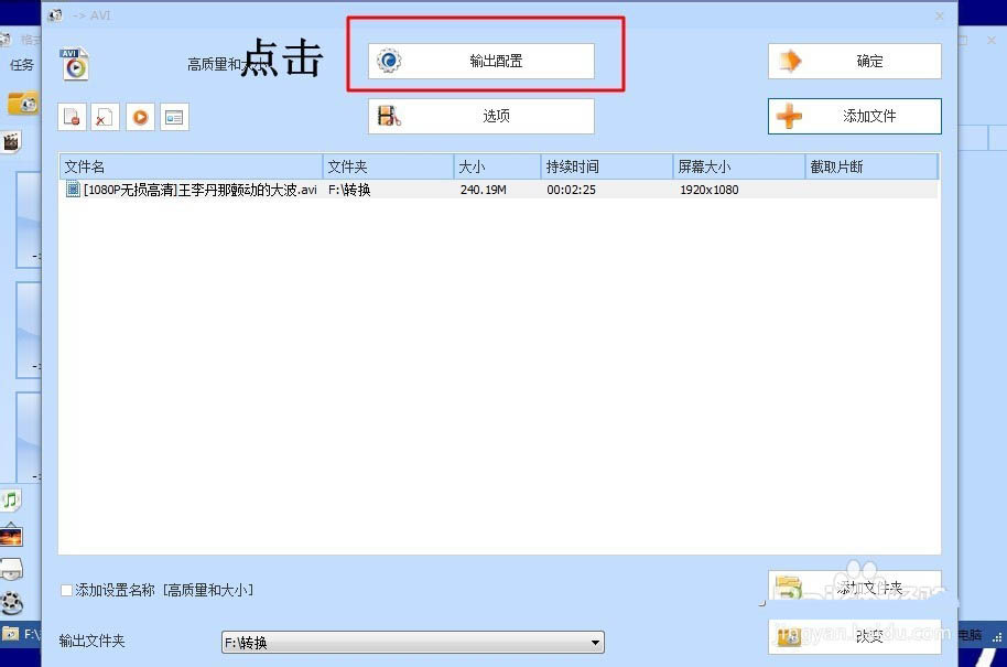 3、添加文件后,点击【输出配置】。