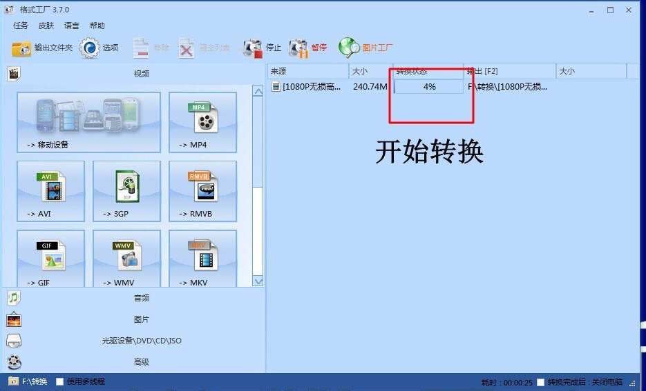 7、然后即开始转换你需要的视频格式了。