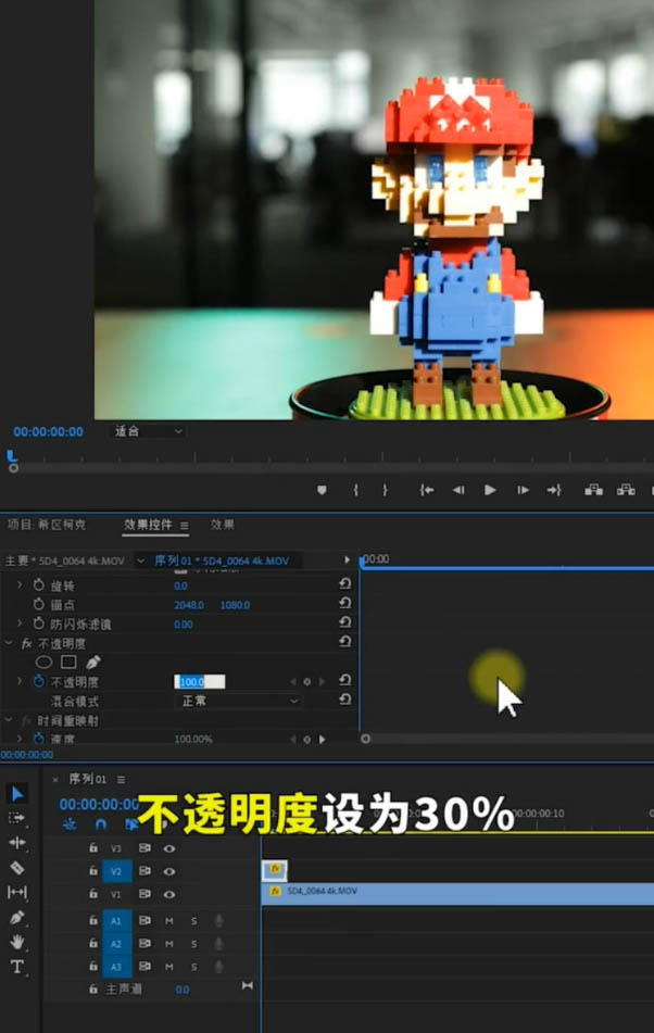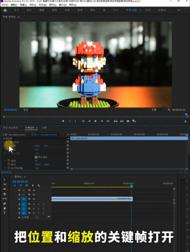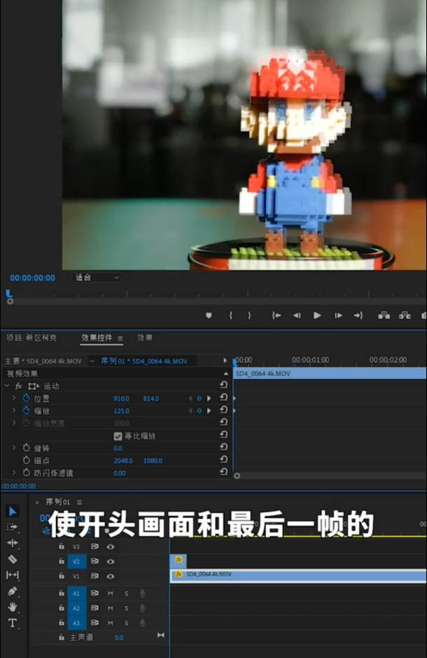 5、选中原素材调整使原素材与复制的一帧的影像重合。