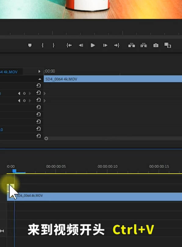 3、到视频开头Ctrl+V把最后一帧复制到最前端。
