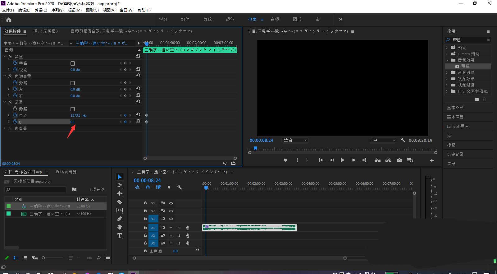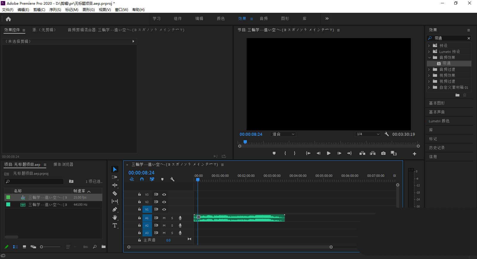 1、首先打开pr,新建一个项目,导入一段音频素材。