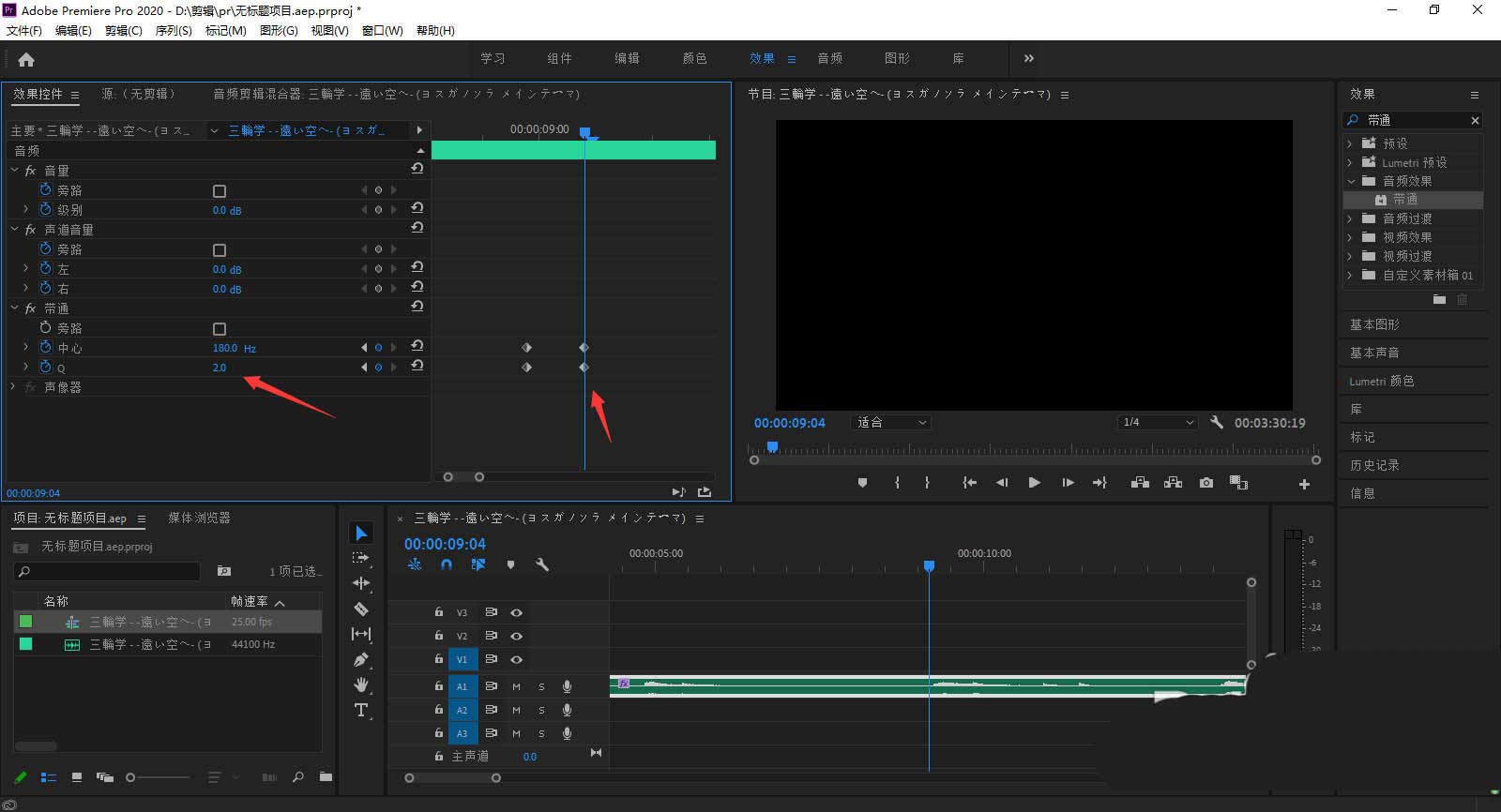 4、向右移动五到十帧,把中心改为180,Q改为2.