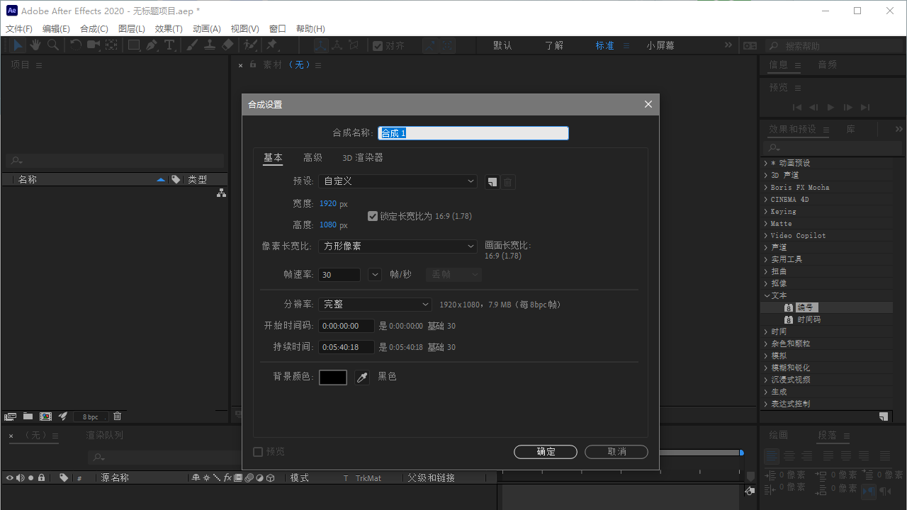 2、创建一个合成。