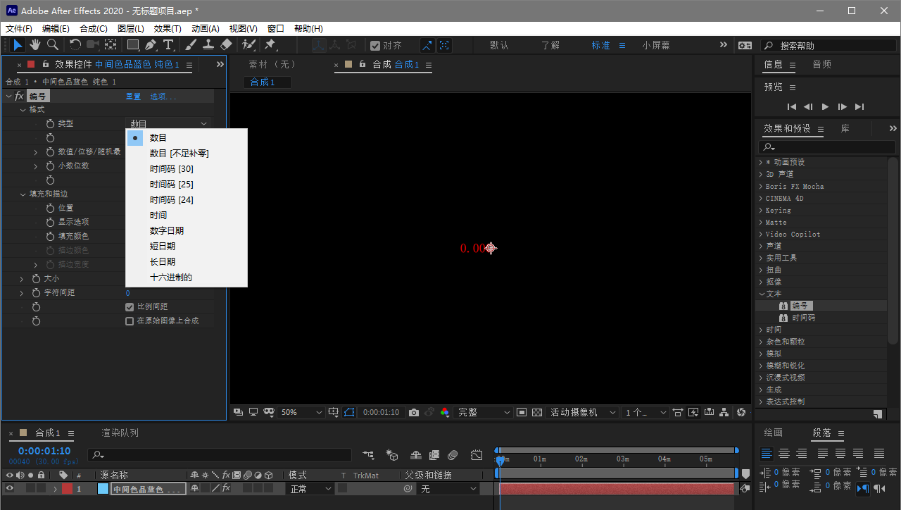 4、找到编号效果应用到纯色层上。