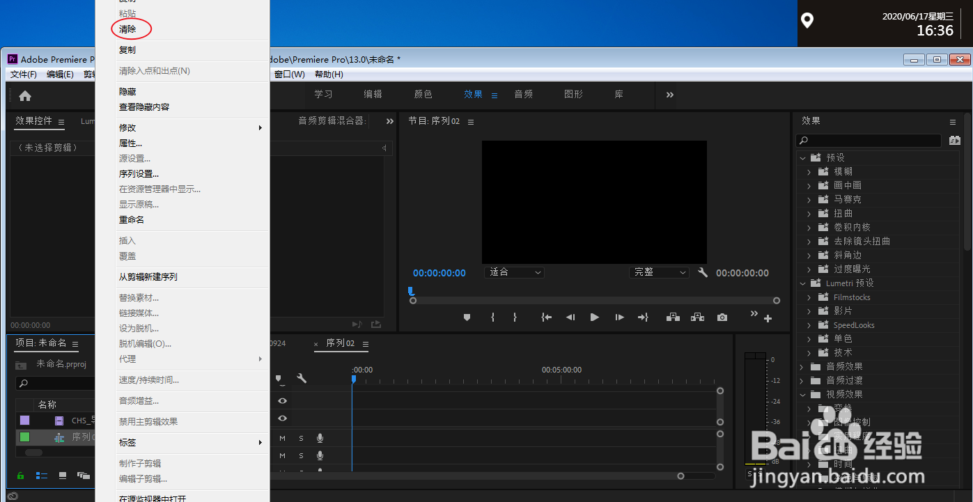 然也右键选择清除,在pr清除基本等于我们说的删除。
