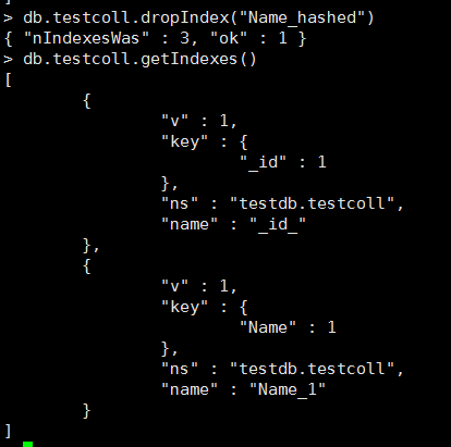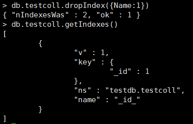 db.mycoll.dropIndexes():删除mycoll的所有索引