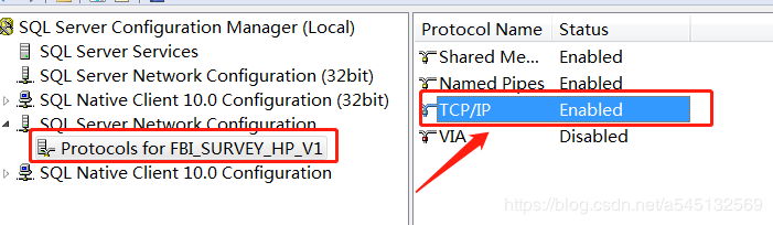 失败的可能行有两个,在sqlserver管理器里面查看下图所标位置,并设置成如下配置