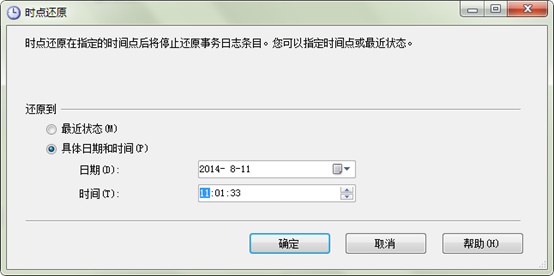 备份是以时间作为还原点,通过选择不同的"目标时间点"就可以还原到不同的备份上去,如果我们修改了"目标时间点",那么下部的"选择用于还原的备份集"中被勾选的名称也会作相应改变。下图是更改目标时间点的对话框。
