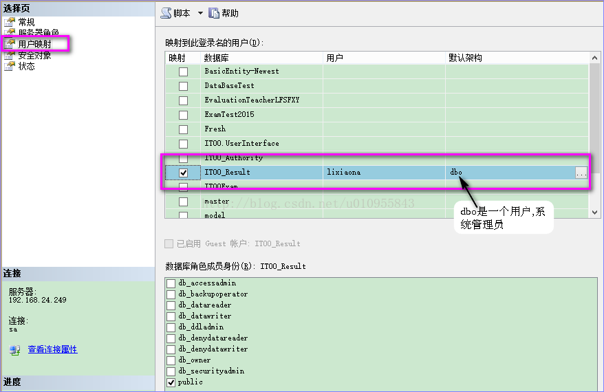操作步骤 Ø 数据库级别登录名建完的效果图如下图所示: