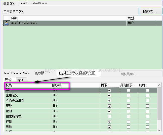 选中其中的一张表,进行权限设置,必须是刚才设置时的数据库,否则是看不到的。