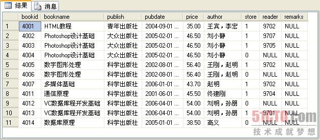 | 图4.22 查询BookInfo表中出版日期在2004/5/1和2006/1/1之间的记录 |