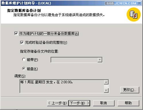 下面的几个步骤我们都选择默认设置,最后在完成对话框里为备份起一个名字,点击完成后,数据库会在你指定的时间进行备份。关于数据库维护计划的更多知识请查看其它相关资料。