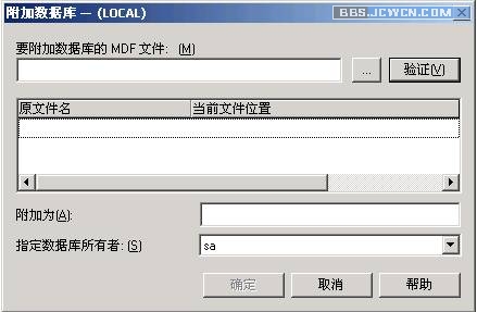五、还原数据库备份文件。在企业管理器中对数据库节点右键单击,选择所有任务下的附加数据库,弹出附加数据库对话框。如下图: