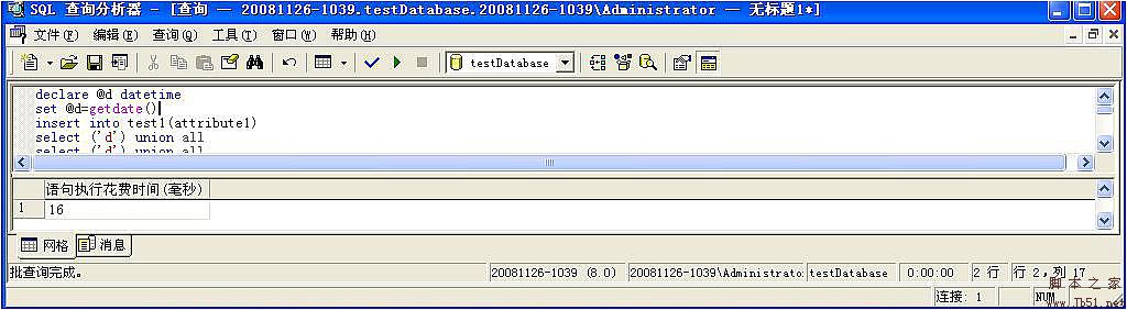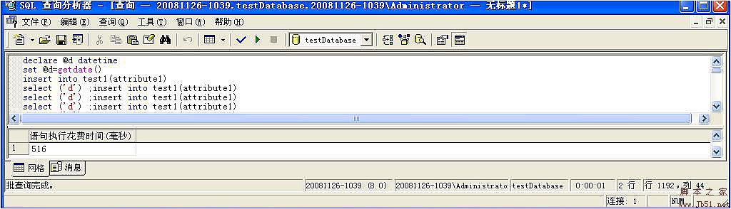 我一次插入的数据是:1190条。用insert into所用的时间在510毫秒上下徘徊,而用insert into select所用的时间在16毫秒上下徘徊。