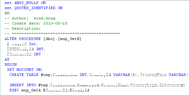 上图存储过程调用了mup_GetA(我把和项目相关的命名都擦除掉了)