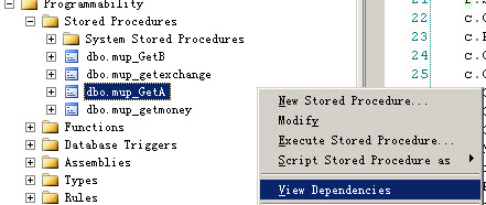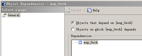 上图通过sqlserver 图形管理器自带的功能查看依赖于mup_GetA的对象。