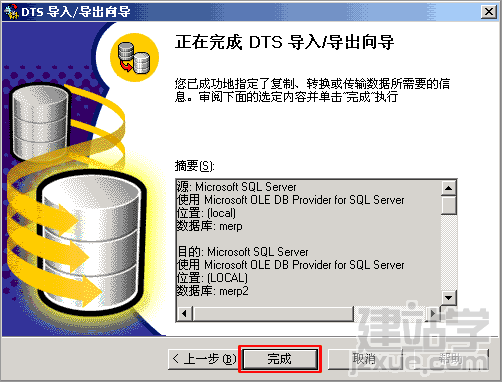 4. 选择目的,输入目的数据库所在的数据库服务器名称、用户名、密码和要复制数据的目的数据库,点击“下一步”按钮