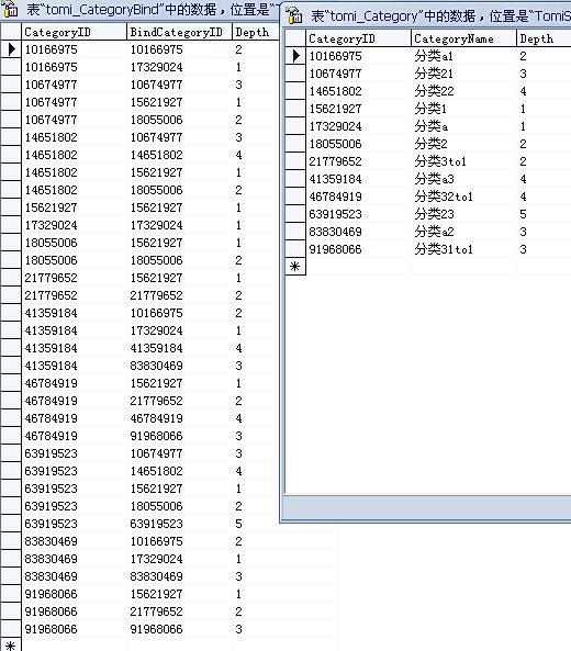 每个分类在tomi_CategoryBind有完整的目录结构。。一个分类在tomi_CategoryBind的记录数等于他在tomi_Category的depth值。