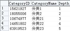 exec Category_UpTree 63919523 这样就可以得到一个分类的完整子目录集,方便吧,只要一条sql.