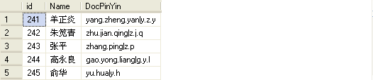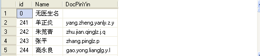 SELECT id,Name,DocPinYin FROM doctor