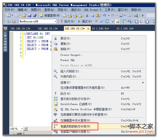 在SQL Server Management Studio的查询窗口里,右击窗口任意位置,选择“包含实际的执行计划”: