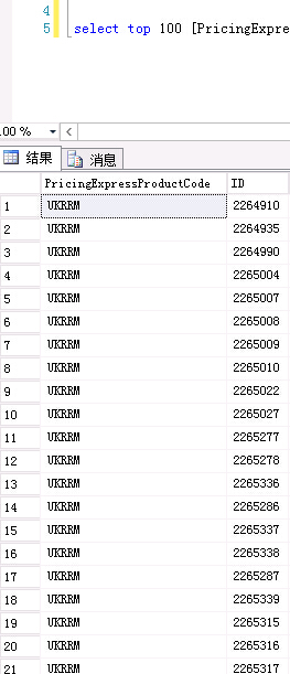 2、大家都在使用同一个非聚集索引,并扫描PricingExpressProductCode字段
